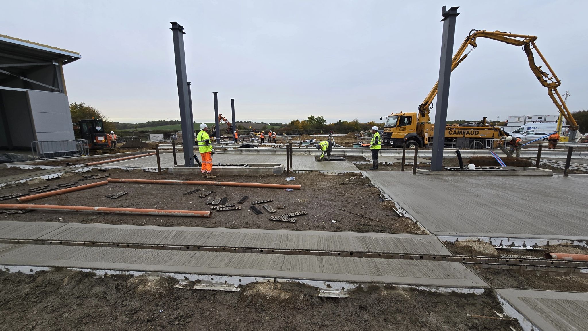 Our customer, Moto Sawtry Services, required the formation of extensive concrete areas within their service station. With over 8,000m² of concrete to pour, a rapid installation process was essential to maintain the construction schedule, especially given the large number of bay sections involved. The contractor faced a tight timeline to complete the work, necessitating a solution that would maximize productivity and efficiency.